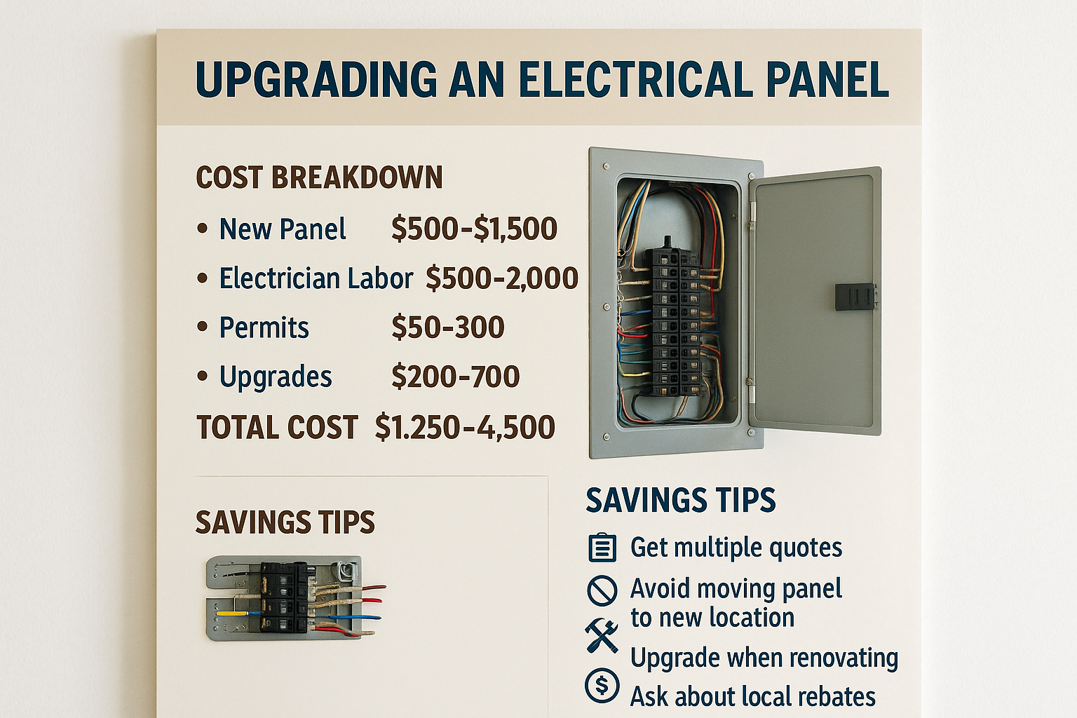 By understanding the costs, benefits, and strategies for saving money on your electrical panel upgrade, you can make informed decisions that enhance your home's safety and efficiency. Be sure to follow the options available to you and consult with professionals to ensure a smooth and cost-effective upgrade process.